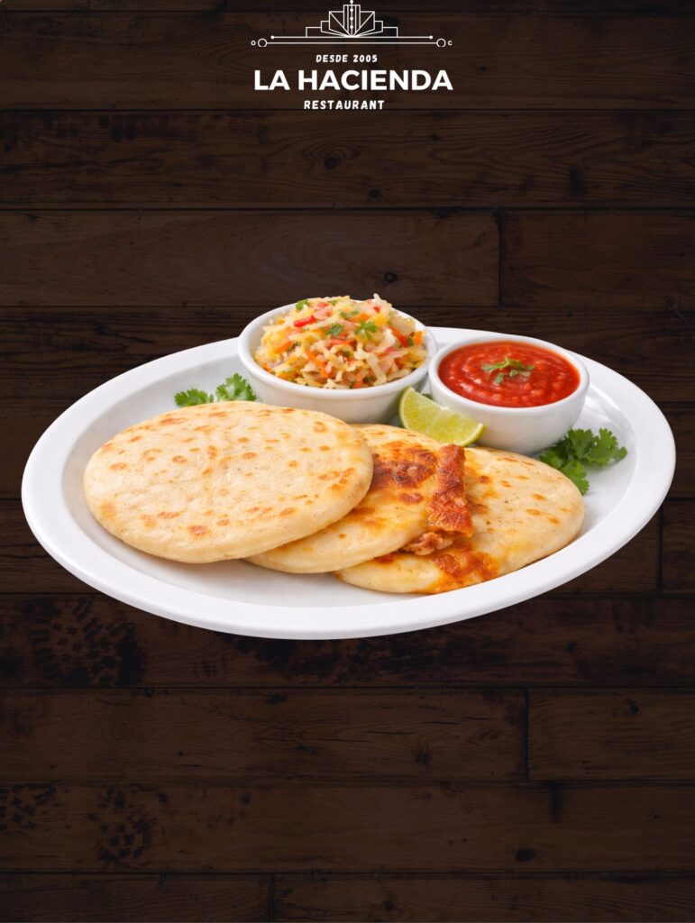 Pupusas – tortillas de maíz rellenas, típicas salvadoreñas. Opciones: queso & frijoles, queso, loroco o locas (mixtas).