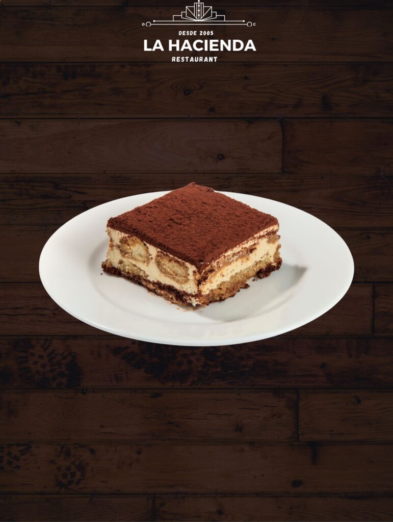 Delicado postre italiano con capas de bizcocho empapado en café, crema suave de mascarpone y un toque de cacao espolvoreado